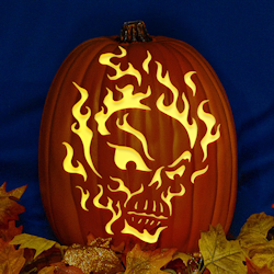 Flaming Skull 02 CO - Cut Out Pumpkin Stencil